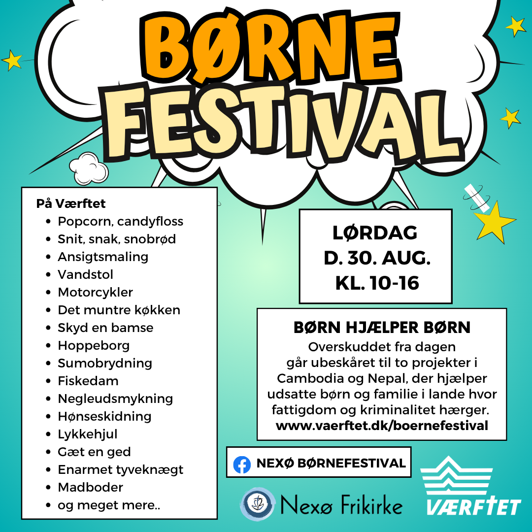 Sæt et stort kryds i kalenderen lørdag d. 30. august, for der er nemlig BØRNEFESTIVAL!